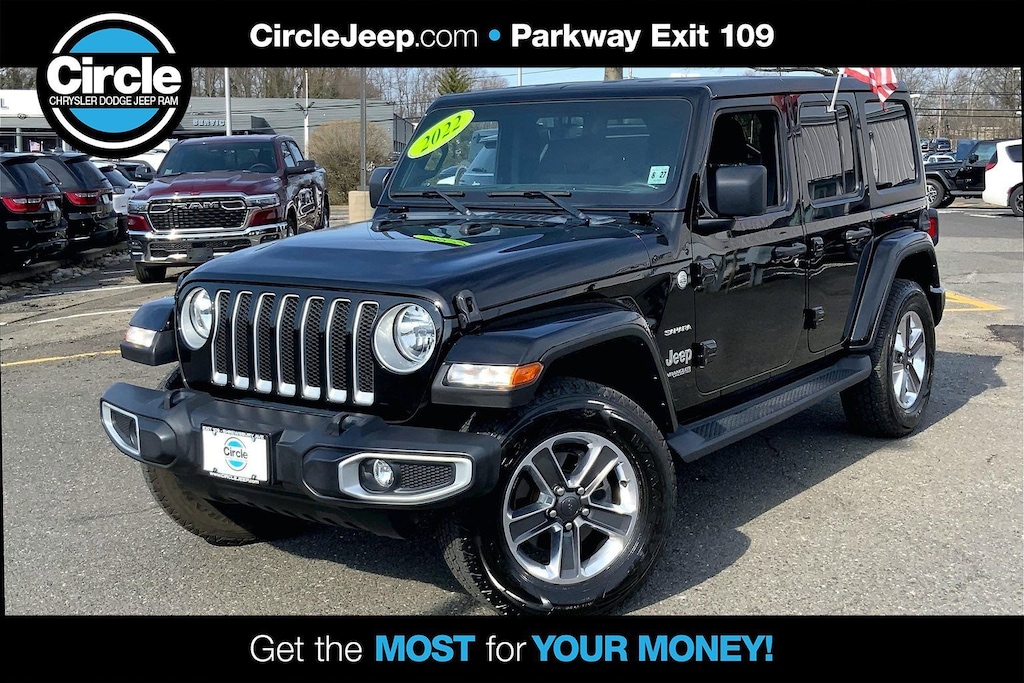 WE ARE OPEN FOR ALL YOUR SALES AND SERVICE NEEDS! COMPLETE ONLINE BUYING EXPERIENCE AVAILABLE! Circle CDJR is proud to offer this good-looking and fun 2022 Jeep Wrangler a positively handsome SUV with the following Features: Cold Weather Group (Heated Front Seats and Heated Steering Wheel), Quick Order Package 22G, FCA US LLC Certified Pre-Owned Certified, 110 MPH Vehicle Max Speed Calibration, 3.45 Rear Axle Ratio, 4-Wheel Disc Brakes, 9 Speakers, ABS brakes, Air Conditioning, Alloy wheels, AM/FM radio: SiriusXM, Apple CarPlay/Android Auto, Auto-dimming Rear-View mirror, Automatic temperature control, Aux Battery, Black 3-Piece Hard Top, Brake assist, Cloth Low-Back Bucket Seats, Compass, Delay-off headlights, Driver door bin, Driver vanity mirror, Dual front impact airbags, Dual front side impact airbags, Electronic Stability Control, Emergency communication system: SiriusXM Guardian, Engine Oil Cooler, Freedom Panel Storage Bag, Front anti-roll bar, Front Bucket Seats, Front Center Armrest w/Storage, Front dual zone A/C, Front fog lights, Front License Plate Bracket, Front reading lights, Fully automatic headlights, Garage door transmitter, Heated door mirrors, Heavy Duty Suspension w/Gas Shocks, Illuminated entry, Integrated roll-over protection, Leather steering wheel, Low tire pressure warning, Manufacturer's Statement of Origin, Navigation System, No Soft Top, Non-Lock Fuel Cap w/o Discriminator, Occupant sensing airbag, Outside temperature display, Panic alarm, ParkView Rear Back-Up Camera, Passenger door bin, Passenger vanity mirror, Power door mirrors, Power steering, Power windows, Radio data system, Radio: Uconnect 4C Nav w/8.4" Display, Rear anti-roll bar, Rear reading lights, Rear Window Defroster, Rear Window Wiper/Washer, Remote keyless entry, Remote Start System, Security system, Speed control, Split folding rear seat, Steering wheel mounted audio controls, Stop-Start Dual Battery System, Tachometer, Telescoping steering wheel, Tilt steering wheel, Traction control, Trip computer, Variably intermittent wipers, Voltmeter, and Wheels: 18" x 7.5" Polished w/Gray Spokes. Odometer is 21160 miles below market average!