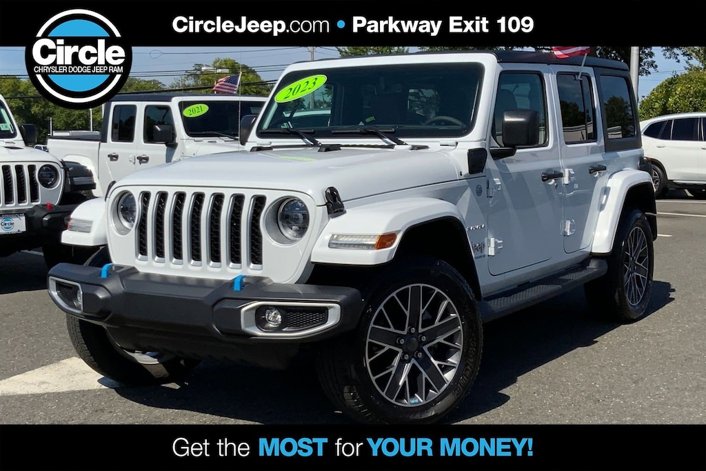 WE ARE OPEN FOR ALL YOUR SALES AND SERVICE NEEDS! COMPLETE ONLINE BUYING EXPERIENCE AVAILABLE! Circle CDJR is proud to offer this attractive-looking and fun 2023 Jeep Wrangler a positively superb-looking SUV with the following Features: Cold Weather Group (Heated Front Seats and Heated Steering Wheel), Quick Order Package 29P Sahara, Trailer Tow & Aux Switch Group (700 Amp Maintenance Free Battery and Auxiliary Switches), FCA US LLC Certified Pre-Owned Certified, 2.0L I4 DOHC, 3.73 Rear Axle Ratio, 4-Wheel Disc Brakes, 9 Speakers, ABS brakes, Air Conditioning, Alloy wheels, AM/FM radio: SiriusXM, Apple CarPlay/Android Auto, Auto-dimming Rear-View mirror, Automatic temperature control, Black 3-Piece Hard Top, Brake assist, Compass, Corning Gorilla Glass, Delay-off headlights, Driver door bin, Driver vanity mirror, Dual front impact airbags, Dual front side impact airbags, Electronic Stability Control, Emergency communication system: SiriusXM Guardian, Freedom Panel Storage Bag, Front anti-roll bar, Front Bucket Seats, Front Center Armrest w/Storage, Front dual zone A/C, Front fog lights, Front reading lights, Fully automatic headlights, Garage door transmitter, Heated door mirrors, Illuminated entry, Integrated roll-over protection, Leather Shift Knob, Low tire pressure warning, MOPAR All-Weather Floor Mats, Navigation System, Occupant sensing airbag, Outside temperature display, Panic alarm, ParkView Rear Back-Up Camera, Passenger door bin, Passenger vanity mirror, Power door mirrors, Power steering, Power windows, Premium McKinley Trimmed Seats, Radio data system, Radio: Uconnect 4C Nav w/8.4" Display, Rear anti-roll bar, Rear reading lights, Rear seat center armrest, Rear Window Defroster, Rear Window Wiper/Washer, Remote keyless entry, Security system, Side Steps, Speed control, Split folding rear seat, Sport Suspension, Steering wheel mounted audio controls, Tachometer, Telescoping steering wheel, Tilt steering wheel, Traction control, Trip computer, Variably intermittent wipers, Voltmeter, and Wheels: 20" x 8" Fully Painted Aluminum. Odometer is 2390 miles below market average!