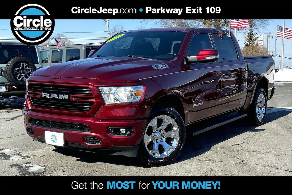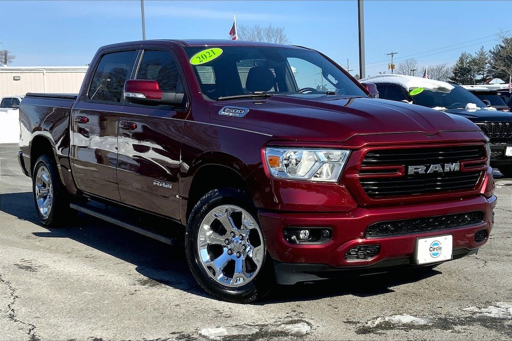 WE ARE OPEN FOR ALL YOUR SALES AND SERVICE NEEDS! COMPLETE ONLINE BUYING EXPERIENCE AVAILABLE! Circle CDJR is proud to offer this fantastic-looking 2021 Ram 1500 an absolutely handsome Truck with the following Features: Big Horn Level 2 Equipment Group (115V Auxiliary Power Outlet, 400W Inverter, For More Info, Call 800-643-2112, ParkSense Front/Rear Park Assist w/Stop, and SiriusXM Radio Service), Quick Order Package 27Z Big Horn, Sport Appearance Package (3 Rear Seat Head Restraints, 4 Way Front Headrests, Deluxe Cloth Bucket Seats, Front Seat Back Map Pockets, and Rear 60/40 Folding Seat), FCA US LLC Certified Pre-Owned Certified, 1-Yr SiriusXM Guardian Trial, 12" Touchscreen Display, 4-Wheel Disc Brakes, 40/20/40 Split Bench Seat, 48V Belt Starter Generator, 4G LTE Wi-Fi Hot Spot, 5-Year SiriusXM Traffic Service, 5-Year SiriusXM Travel Link Service, 6 Speakers, 9 Amplified Speakers w/Subwoofer, ABS brakes, Air Conditioning, Alloy wheels, AM/FM radio, Anti-Spin Differential Rear Axle, Apple CarPlay, Black Exterior Mirrors, Brake assist, Bumpers: chrome, Cloth Bench Seat, Compass, Delay-off headlights, Disassociated Touchscreen Display, Driver door bin, Dual front impact airbags, Dual front side impact airbags, Electronic Stability Control, For Details, Visit DriveUconnect.com, Front anti-roll bar, Front Center Armrest w/Storage, Front fog lights, Front License Plate Bracket, Front reading lights, Front wheel independent suspension, Fully automatic headlights, Google Android Auto, GPS Antenna Input, GPS Navigation, HD Radio, Heated door mirrors, Illuminated entry, Integrated Center Stack Radio, Integrated Voice Command w/Bluetooth, Leather steering wheel, LED Footwell Lighting, Low tire pressure warning, Manufacturer's Statement of Origin, MOPAR Front & Rear Rubber Floor Mats, Occupant sensing airbag, Outside temperature display, Overhead airbag, Overhead console, Panic alarm, ParkView Rear Back-Up Camera, Passenger door bin, Passenger vanity mirror, Power door mirrors, Power steering, Power windows, Radio data system, Radio: Uconnect 12 w/Navigation, Radio: Uconnect 3 w/5" Display, Rear anti-roll bar, Rear seat center armrest, Rear step bumper, Rear Wheelhouse Liners, Remote keyless entry, Remote Start System, SiriusXM Satellite Radio, SiriusXM Traffic Plus, SiriusXM Travel Link, SiriusXM w/360L, Speed control, Split folding rear seat, Steering wheel mounted audio controls, Tachometer, Telescoping steering wheel, Tilt steering wheel, Traction control, Trailer Brake Control, Trip computer, USB Host Flip, Variably intermittent wipers, Voltmeter, Wheels: 18" x 8" Cast-Aluminum Painted, and Wheels: 20" x 9" Aluminum Chrome Clad (WRK)