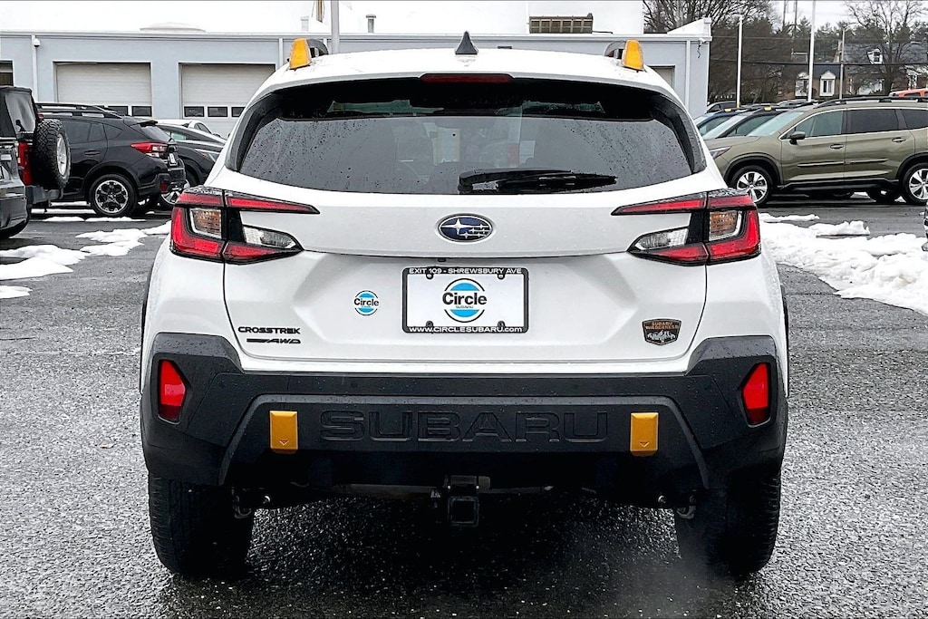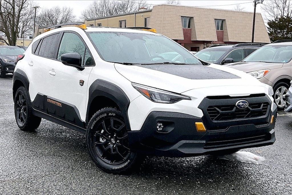 Crosstrek Mirror Package (Auto-Dimming Exterior Mirror w/Approach Light and Auto-Dimming Mirror w/Compass & HomeLink), harman/kardon Aud & Pwr Moonroof & Pwr Driver Seat (10-Way Power Driver's Seat, harman/kardon Surround Sound Speaker System, and Power Moonroof), 4-Wheel Disc Brakes, 4.11 Axle Ratio, 6 Speakers, ABS brakes, Air Conditioning, Alloy wheels, AM/FM radio: SiriusXM, Anti-whiplash front head restraints, Auto High-beam Headlights, Automatic temperature control, Brake assist, Bumpers: body-color, Cargo Net, Driver door bin, Driver vanity mirror, Dual front impact airbags, Dual front side impact airbags, Electronic Stability Control, Emergency communication system: STARLINK Safety and Security (Subscription Required), Exterior Parking Camera Rear, Four wheel independent suspension, Front anti-roll bar, Front Bucket Seats, Front Center Armrest, Front dual zone A/C, Front fog lights, Front reading lights, Fully automatic headlights, Heated door mirrors, Heated Front Bucket Seats, Heated front seats, Illuminated entry, Knee airbag, Leather Shift Knob, Low tire pressure warning, Occupant sensing airbag, Outside temperature display, Overhead airbag, Overhead console, Panic alarm, Passenger door bin, Passenger vanity mirror, Power door mirrors, Power steering, Power windows, Radio data system, Radio: Subaru STARLINK 11.6" Multimedia Plus Sys, Rear anti-roll bar, Rear seat center armrest, Rear window defroster, Rear window wiper, Remote keyless entry, Security system, Speed control, Speed-sensing steering, Split folding rear seat, Spoiler, STARLINK/Apple CarPlay/Android Auto, Steering wheel mounted audio controls, Tachometer, Telescoping steering wheel, Tilt steering wheel, Traction control, Trailer Hitch, Trip computer, Turn signal indicator mirrors, Variably intermittent wipers, Wheels: 17" x 7.0J Matte Black Aluminum Alloy, and Wilderness StarTex Upholstery. 25/29 City/Highway MPG