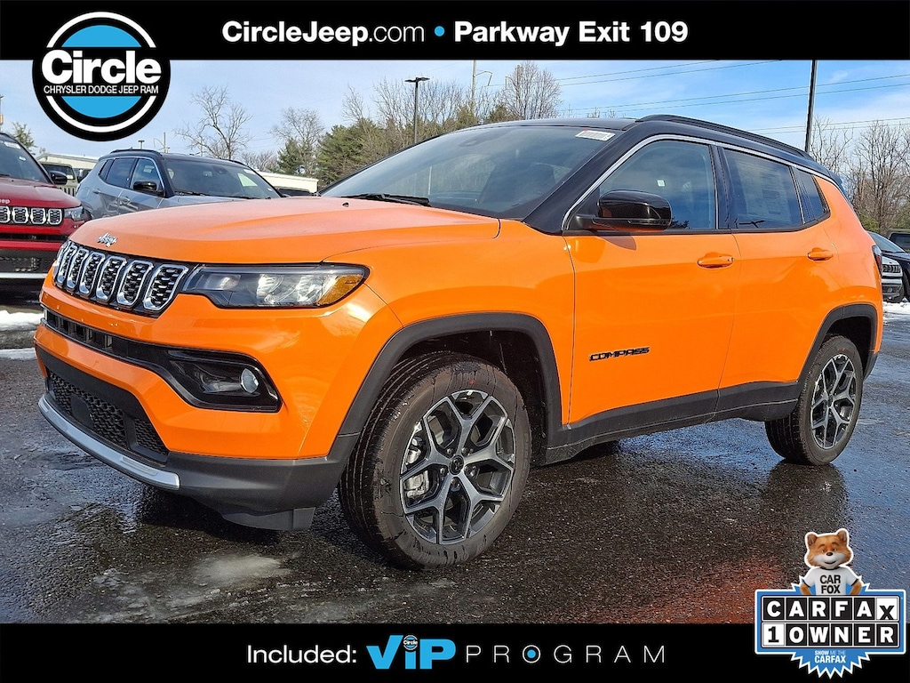 WE ARE OPEN FOR ALL YOUR SALES AND SERVICE NEEDS! COMPLETE ONLINE BUYING EXPERIENCE AVAILABLE! Circle CDJR is proud to offer this good-looking 2026 Jeep Compass a positively stunning-looking SUV with the following Features: Quick Order Package 29G Limited, 4WD, 10.1" Touchscreen Display, 3.73 Final Drive Ratio, 4-Wheel Disc Brakes, 4G LTE Wi-Fi Hot Spot, 6 Speakers, ABS brakes, Air Conditioning, Alloy wheels, AM/FM radio: SiriusXM, Auto High-beam Headlights, Auto-dimming Rear-View mirror, Automatic temperature control, Brake assist, Bumpers: body-color, Compass, Delay-off headlights, Driver door bin, Driver vanity mirror, Dual front impact airbags, Dual front side impact airbags, Electronic Stability Control, Emergency communication system: SiriusXM Guardian, Four wheel independent suspension, Front anti-roll bar, Front Bucket Seats, Front Center Armrest w/Storage, Front dual zone A/C, Front fog lights, Front License Plate Bracket, Front reading lights, Fully automatic headlights, Global Telematics Box Module, Heated door mirrors, Heated front seats, Heated steering wheel, Illuminated entry, Knee airbag, Leather Shift Knob, Leather steering wheel, Leatherette Seats, Low tire pressure warning, MyFlexCare Service Plan, Occupant sensing airbag, Outside temperature display, Overhead airbag, Overhead console, Panic alarm, ParkView Rear Back-Up Camera, Passenger door bin, Passenger vanity mirror, Power door mirrors, Power driver seat, Power Liftgate, Power steering, Power windows, Premium audio system: UConnect 5, Radio: Uconnect 5 with 10.1" Display, Rain sensing wipers, Rear anti-roll bar, Rear seat center armrest, Rear window defroster, Rear window wiper, Remote keyless entry, Security system, SiriusXM Guardian - Included Trail (B), SiriusXM Radio Service, Speed control, Split folding rear seat, Spoiler, Steering wheel mounted audio controls, Tachometer, Telescoping steering wheel, Tilt steering wheel, Traction control, Trip computer, Turn signal indicator mirrors, Variably intermittent wipers, and Wheels: 18" x 7" Painted Diamond Cut Aluminum. Price includes: $1000 - 2026 National Retail Bonus Cash . Exp. 04/30/2026 $1500 - 2026 Northeast BC Retail Bonus Cash . Exp. 04/30/2026