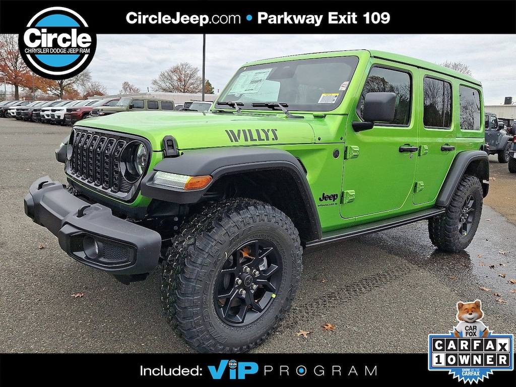 WE ARE OPEN FOR ALL YOUR SALES AND SERVICE NEEDS! COMPLETE ONLINE BUYING EXPERIENCE AVAILABLE! Circle CDJR is proud to offer this terrific-looking and fun 2026 Jeep Wrangler an absolutely good-looking SUV with the following Features: Convenience Group (2-Door Passive Entry, Front Door Locks, Air Conditioning with Auto Temp Control, Air Filtering, Cluster 7.0" TFT Color Display, Emergency/Assistance Call, Heated Front Seats, Heated Steering Wheel, and Universal Garage Door Opener), Quick Order Package 22W Willys (4-Wheel Drive Swing Gate Decal, 7 and 4 Pin Wiring Harness, Advanced Brake Assist, Automatic Headlamps, Auxiliary Switches, Black Grille with Gloss Black Rings, Class II Receiver Hitch, Conventional Differential Front Axle, Corning Gorilla Glass, Dana M210 Wide HD Tube Front Axle, Dana M220 Wide Rear Axle, Daytime Running Lamps LED Accents, Deep Tint Sunscreen Windows, E-Locker Rear Axle, Enhanced Adaptive Cruise Control, Front LED Fog Lamps, Full Speed Forward Collision Warning Plus, Increased Travel Export Tuned Suspension, Injection Molded Black Rear Bumper, LED Premium Reflector Headlamps, Mold in Color Bumper with Gloss Black, Molded in Color Rubicon Highline Flare, MOPAR All-Weather Floor Mats, Off-Road Plus Mode, Power Heated Mirrors, Premium Wrapped Steering Wheel, Security Alarm, Sun Visors with Illuminated Vanity Mirrors, Wheels: 17" x 7.5" Painted Black, and Willys Hood Decal), Safety Group (Auto High Beam Headlamp Control, Blind Spot and Cross Path Detection, LED Taillamps, and ParkSense Rear Park Assist System), 12.3" Touchscreen Display, 4-Wheel Disc Brakes, 4G LTE Wi-Fi Hot Spot, 8 Speakers, ABS brakes, Air Conditioning, Alpine Premium Audio System, AM/FM radio: SiriusXM with 360L, Apple CarPlay, Apple CarPlay/Android Auto, Aux Battery, Black MOPAR Perforated Leather, Brake assist, Compass, Connectivity - US/Canada, Delay-off headlights, Driver door bin, Driver vanity mirror, Dual front impact airbags, Dual front side impact airbags, Electronic Stability Control, For More Info, Call 800-643-2112, Front anti-roll bar, Front Bucket Seats, Front Center Armrest w/Storage, Front fog lights, Front reading lights, Google Android Auto, Illuminated entry, Integrated Center Stack Radio, Integrated roll-over protection, Jeep Trail Rated Kit, Low tire pressure warning, Myflexcare Service Plan, Non-Lock Fuel Cap Without Discriminator, Normal Duty Suspension, Occupant sensing airbag, Outside temperature display, Overhead airbag, Panic alarm, ParkView Rear Back-Up Camera, Passenger door bin, Passenger vanity mirror, Power steering, Power Top Quarter Window Storage Bag, Power windows, Radio data system, Radio: Uconnect 5 with 12.3" Display, Rear anti-roll bar, Rear reading lights, Rear Window Defroster, Rear Window Wiper/Washer, Remote keyless entry, Removable Rear Quarter Windows, SiriusXM Radio Service, SiriusXM with 360L, Sky One-Touch Power Top, Speed control, Split folding rear seat, Steering wheel mounted audio controls, Stop-Start Dual Battery System, Tachometer, Telescoping steering wheel, Tilt steering wheel, Traction control, Trip computer, Variably intermittent wipers, and Wheels: 17" x 7.5" Black Steel Styled. Price includes: $1000 - 2026 National Retail Bonus Cash . Exp. 04/30/2026