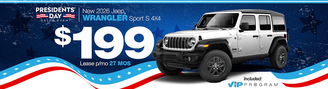 Price includes all costs to be paid by consumer except tax, title and license fees. Offers available to well qualified buyers with approval through Stellantis Financial Services. Based on closed end lease. $4793 Due at signing w/$3999 down plus first month's payment, $0 Sec. Dep. and $595 acquisition fee. Total Payments: $5373. Total Cost: $9967. P/Option Available at Lease End: $33,793. 7500 miles a year/30¢ per mi. thereafter. Lessee responsible for excess wear & tear. $395 Disposition Fee at Lease End. Must qualify for all incentives. See dealer for details. Not responsible for typographical errors. Expires 3/2/26.