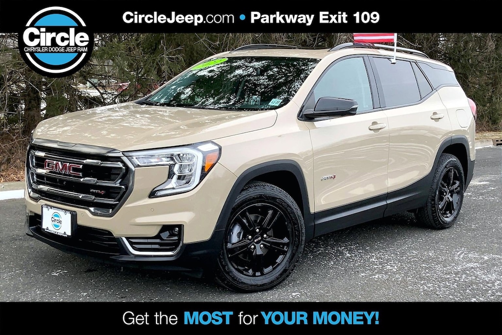 WE ARE OPEN FOR ALL YOUR SALES AND SERVICE NEEDS! COMPLETE ONLINE BUYING EXPERIENCE AVAILABLE! Circle CDJR is proud to offer this terrific-looking 2022 GMC Terrain an absolutely wonderful-looking SUV with the following Features: GMC Pro Safety Plus (Adaptive Cruise Control, Lane Change Alert w/Side Blind Zone Alert, Rear Cross-Traffic Alert, Rear Park Assist, and Safety Alert Seat), Infotainment Package II (Premium 7-Speaker Bose Sound System w/Amplifier, Radio: GMC Infotainment Audio System w/Navigation, and SiriusXM Radio), License Plate Front Mounting Package, Preferred Equipment Group 4SC, Tech Package (Front & Rear Park Assist, HD Surround Vision, and Head-Up Display), AWD, 2 USB Data Ports, 2 USB Data Ports w/SD Card Reader, 3.47 Axle Ratio, 4-Wheel Disc Brakes, 6 Speakers, 6-Speaker Audio System Feature, 6-Way Power Front Passenger Seat, 8-Way Power Driver Seat Adjuster, ABS brakes, Air Conditioning, Alloy wheels, AM/FM radio: SiriusXM, Auto High-beam Headlights, Auto-dimming Rear-View mirror, Automatic temperature control, Bluetooth® For Phone, Brake assist, Bumpers: body-color, Compass, Delay-off headlights, Driver & Front Passenger Heated Seats, Driver door bin, Driver vanity mirror, Dual front impact airbags, Dual front side impact airbags, Electronic Stability Control, Emergency communication system: OnStar Guidance, Four wheel independent suspension, Front anti-roll bar, Front Bucket Seats, Front Center Armrest, Front dual zone A/C, Front fog lights, Front Passenger 2-Way Power Lumbar, Front reading lights, Fully automatic headlights, Garage door transmitter, Heated door mirrors, Heated front seats, Heated steering wheel, Illuminated entry, Lane Departure Warning System, Low tire pressure warning, Memory seat, Occupant sensing airbag, Outside temperature display, Overhead airbag, Overhead console, Panic alarm, Passenger door bin, Passenger vanity mirror, Perforated Leather-Appointed Seat Trim w/AT4 Logo, Power door mirrors, Power Driver Lumbar Control, Power driver seat, Power Liftgate, Power passenger seat, Power steering, Power windows, Radio data system, Radio: GMC Infotainment Audio System w/8" Display, Rear anti-roll bar, Rear seat center armrest, Rear window defroster, Rear window wiper, Remote keyless entry, Roof rack: rails only, Security system, Skyscape Power Sunroof w/Power Sunscreen, Speed control, Speed-sensing steering, Split folding rear seat, Spoiler, Steering wheel mounted audio controls, Tachometer, Telescoping steering wheel, Tilt steering wheel, Traction control, Trip computer, Turn signal indicator mirrors, Variably intermittent wipers, Wheels: 17" x 7" Gloss Black Aluminum, and Wireless Apple CarPlay/Wireless Android Auto. 25/28 City/Highway MPG