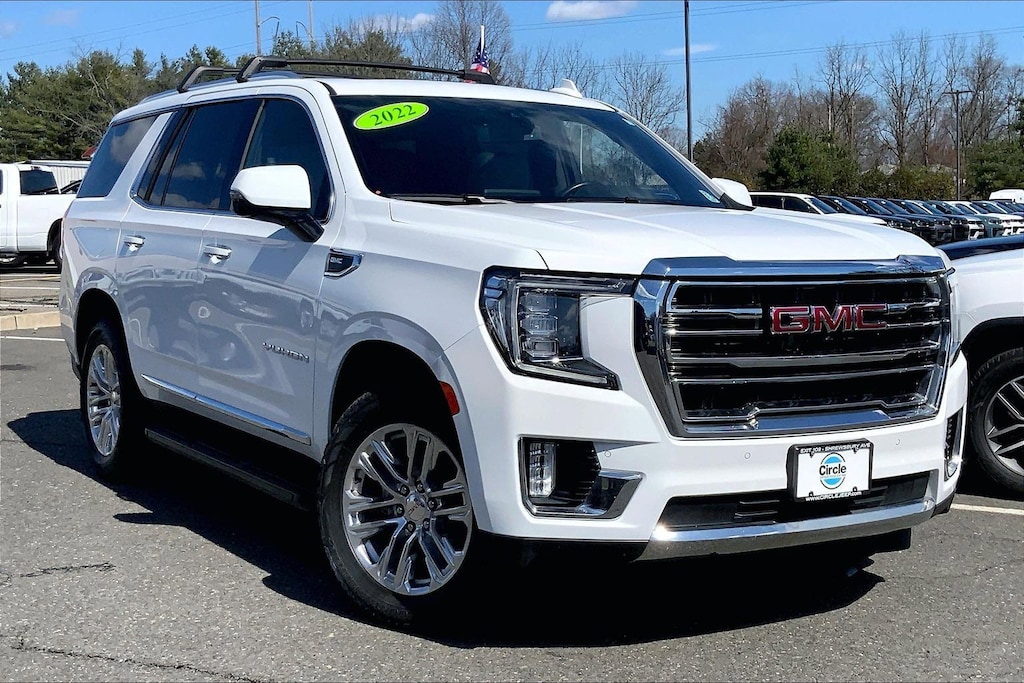 WE ARE OPEN FOR ALL YOUR SALES AND SERVICE NEEDS! COMPLETE ONLINE BUYING EXPERIENCE AVAILABLE! Circle CDJR is proud to offer this stunning 2022 GMC Yukon an absolutely attractive SUV with the following Features: License Plate Front Mounting Package, Preferred Equipment Group 4SA (2 Presets For Power Driver Seat, Automatic Stop/Start, Bose 9-Speaker Stereo Audio System Feature, Bright Chrome Bodyside Moldings, Bright Front & Rear Door Sill Plates, Chrome Door Handles w/Body-Color Strip, Hands-Free Power Programmable Rear Liftgate, Heated & Ventilated Driver & Front Passenger Seats, Heated Driver & Front Passenger Seats, Inside Rear-View Auto-Dimming Mirror, Safety Alert Seat, Start/Stop System Disable Button, Universal Home Remote, and Wireless Charging), SLT Luxury Package (2 Presets For Outside Rearview Mirrors, 3rd Row 60/40 Power-Folding Split-Bench Seat, HD Surround Vision, Heated 2nd Row Outboard Position Seats, Heated Steering Wheel, Outside Heated Power-Adjustable Mirrors, Power Release 2nd Row 60/40 Split-Folding Bench Seat, Power Tilt & Telescopic Steering Column, and Rear Pedestrian Alert), SLT Premium Package (Dual-Pane Panoramic Power Sunroof), 4WD, 3.23 Rear Axle Ratio, 3rd row seats: split-bench, 4-Wheel Disc Brakes, 9 Speakers, ABS brakes, Air Conditioning, Alloy wheels, AM/FM radio: SiriusXM with 360L, AM/FM Stereo, Apple CarPlay/Android Auto, Auto High-beam Headlights, Auto-dimming Rear-View mirror, Automatic Emergency Braking, Automatic temperature control, Bodyside moldings, Brake assist, Bumpers: body-color, Compass, Delay-off headlights, Driver door bin, Driver vanity mirror, Dual front impact airbags, Dual front side impact airbags, Electronic Stability Control, Emergency communication system: OnStar and GMC Connected Services capable, Following Distance Indicator, Forward Collision Alert, Four wheel independent suspension, Front & Rear Park Assist, Front anti-roll bar, Front Bucket Seats, Front Center Armrest, Front dual zone A/C, Front fog lights, Front Pedestrian Braking, Front reading lights, Fully automatic headlights, Garage door transmitter, Heated door mirrors, Heated front seats, Illuminated entry, IntelliBeam Automatic High Beam On/Off, Lane Change Alert w/Side Blind Zone Alert, Lane Keep Assist w/Lane Departure Warning, Leather steering wheel, Low tire pressure warning, Memory seat, Navigation System, Not Equip w/Ventilated Seat Cushion Blower Motor, Not Equipped w/4-Way Driver & Fr Pass Pwr Lumbar, Not Equipped w/Front & Rear Park Assist, Not Equipped w/Steering Column Lock, Occupant sensing airbag, Outside temperature display, Overhead airbag, Overhead console, Panic alarm, Passenger door bin, Passenger vanity mirror, Perforated Leather-Appointed Seating, Power door mirrors, Power driver seat, Power Liftgate, Power passenger seat, Power Release 2nd Row Bucket Seats, Power steering, Power windows, Premium Smooth Ride Suspension, Rain sensing wipers, Rear air conditioning, Rear anti-roll bar, Rear Cross Traffic Alert, Rear reading lights, Rear seat center armrest, Rear window defroster, Rear window wiper, Remote keyless entry, Roof rack: rails only, Security system, SiriusXM w/360L, Speed control, Speed-sensing steering, Split folding rear seat, Spoiler, Steering wheel mounted audio controls, Tachometer, Telescoping steering wheel, Tilt steering wheel, Traction control, Trip computer, Variably intermittent wipers, Ventilated front seats, Voltmeter, and Wheels: 20" x 9" 6-Spoke Polished Aluminum. Odometer is 2190 miles below market average!