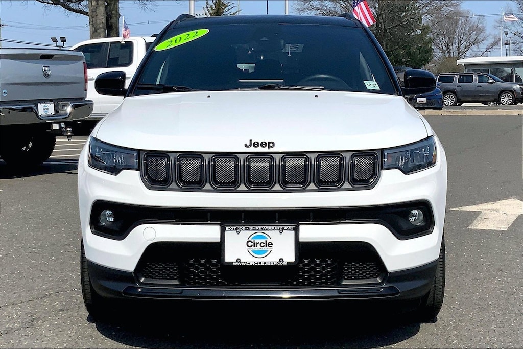 WE ARE OPEN FOR ALL YOUR SALES AND SERVICE NEEDS! COMPLETE ONLINE BUYING EXPERIENCE AVAILABLE! Circle CDJR is proud to offer this attractive 2022 Jeep Compass a truly stunning SUV with the following Features: Convenience Group (115V Auxiliary Power Outlet, 2nd Row USB Type A/C Charge Only, Air Conditioning ATC w/Dual Zone Control, All-Season Floor Mats, Auto-Dimming Rear-View Mirror, Foot Activated Open 'N Go Liftgate, Heated Front Seats, Heated Steering Wheel, Humidity Sensor, Leather Wrapped Steering Wheel, Power Adjust 8-Way Driver Seat, Power Liftgate, Remote Start System, Reversible Carpet/Vinyl Cargo Mat, Security Alarm, Universal Garage Door Opener, Vehicle Information Center, and Windshield Wiper De-Icer), Quick Order Package 2GB Altitude (Altitude Special Edition, Black Day Light Opening Moldings, Black Headliner, Black Roof, Bright Exhaust Tip, Gloss Black Badges, Gloss Black Grille & Crosshairs, Gloss Black Lower Rear Fascia Valance, Light Tungsten Interior Accent Stitching, Piano Black Interior Accents, and Wheels: 18" x 7" Gloss Black Painted Aluminum), Sun and Sound Group (Power Front/Fixed Rear Full Sunroof and Premium Alpine Speaker System), FCA US LLC Certified Pre-Owned Certified, 4WD, 17" x 7" Painted Aluminum Wheels, 3.73 Axle Ratio, 4-Wheel Disc Brakes, 6 Speakers, ABS brakes, Air Conditioning, Alloy wheels, AM/FM radio: SiriusXM, Anti-whiplash front head restraints, Auto High-beam Headlights, Brake assist, Bumpers: body-color, Compass, Delay-off headlights, Driver door bin, Driver vanity mirror, Dual front impact airbags, Dual front side impact airbags, Electronic Stability Control, Emergency communication system: SiriusXM Guardian, Four wheel independent suspension, Front anti-roll bar, Front Bucket Seats, Front Center Armrest w/Storage, Front fog lights, Front License Plate Bracket, Front reading lights, Fully automatic headlights, Heated door mirrors, Illuminated entry, Knee airbag, Leather Shift Knob, Low tire pressure warning, Occupant sensing airbag, Outside temperature display, Overhead airbag, Overhead console, Panic alarm, ParkView Rear Back-Up Camera, Passenger door bin, Passenger vanity mirror, Power door mirrors, Power steering, Power windows, Premium Cloth/Vinyl Bucket Seats, Radio: Uconnect 5 w/10.1" Display, Rear anti-roll bar, Rear seat center armrest, Rear window defroster, Rear window wiper, Remote keyless entry, Roof rack: rails only, Speed control, Split folding rear seat, Spoiler, Steering wheel mounted audio controls, Tachometer, Telescoping steering wheel, Tilt steering wheel, Traction control, Trip computer, and Variably intermittent wipers. Odometer is 5769 miles below market average! 22/30 City/Highway MPG