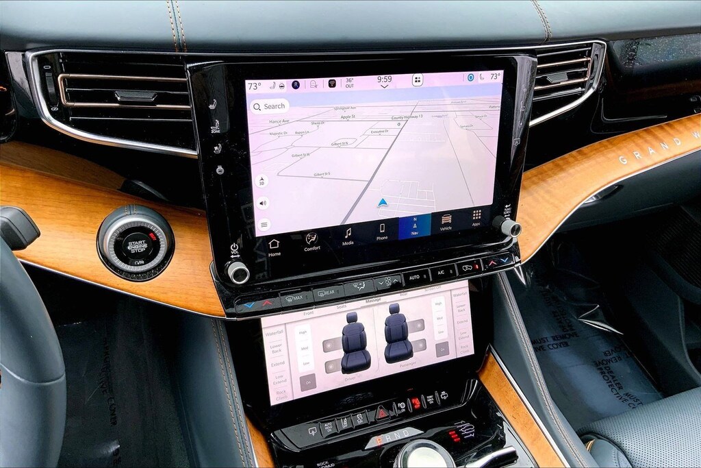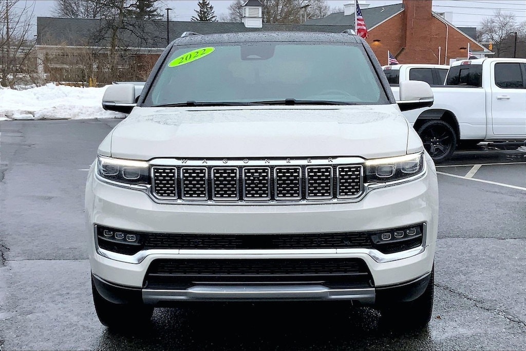 WE ARE OPEN FOR ALL YOUR SALES AND SERVICE NEEDS! COMPLETE ONLINE BUYING EXPERIENCE AVAILABLE! Circle CDJR is proud to offer this superb-looking 2022 Jeep Grand Wagoneer a positively great-looking SUV with the following Features: Quick Order Package 23W, Two Tone Paint Group, FCA US LLC Certified Pre-Owned Certified, 3.92 Rear Axle Ratio, 3rd row seats: bench, 4-Wheel Disc Brakes, ABS brakes, Adjustable pedals, Air Conditioning, Alloy wheels, AM/FM radio: SiriusXM with 360L, Anti-whiplash front head restraints, Audio memory, Auto High-beam Headlights, Auto-dimming door mirrors, Auto-dimming Rear-View mirror, Auto-leveling suspension, Automatic temperature control, Brake assist, Bumpers: body-color, Compass, Delay-off headlights, Driver door bin, Driver vanity mirror, Driver's Seat Mounted Armrest, Dual front impact airbags, Dual front side impact airbags, Electronic Stability Control, Four wheel independent suspension, Front anti-roll bar, Front Bucket Seats, Front Center Armrest w/Storage, Front dual zone A/C, Front fog lights, Front reading lights, Fully automatic headlights, Garage door transmitter, Genuine wood console insert, Genuine wood dashboard insert, Genuine wood door panel insert, Heads-Up Display, Heated door mirrors, Heated front seats, Heated rear seats, Heated steering wheel, Illuminated entry, Knee airbag, Leather steering wheel, Low tire pressure warning, Memory seat, Navigation System, Night vision lights, Normal Duty Suspension, Occupant sensing airbag, Outside temperature display, Overhead airbag, Overhead console, Panic alarm, Passenger door bin, Passenger seat mounted armrest, Passenger vanity mirror, Pedal memory, Power adjustable front head restraints, Power door mirrors, Power driver seat, Power Liftgate, Power moonroof, Power passenger seat, Power steering, Power windows, Premium Leather Trimmed Bucket Seats, Radio data system, Radio: Uconnect 5 Nav w/12.0" Display, Rain sensing wipers, Rear air conditioning, Rear anti-roll bar, Rear dual zone A/C, Rear reading lights, Rear seat center armrest, Rear window defroster, Rear window wiper, Reclining 3rd row seat, Remote keyless entry, Roof rack, Security system, Speed control, Speed-sensing steering, Speed-Sensitive Wipers, Split folding rear seat, Steering wheel memory, Steering wheel mounted audio controls, Tachometer, Telescoping steering wheel, Tilt steering wheel, Traction control, Trip computer, Turn signal indicator mirrors, Variably intermittent wipers, Ventilated front seats, Ventilated rear seats, Voltmeter, and Wheels: 22" x 9.0" Premium 4 Aluminum.