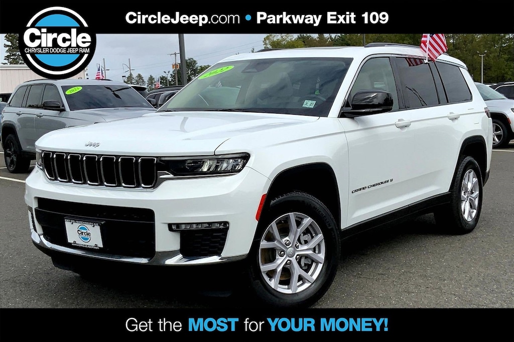 WE ARE OPEN FOR ALL YOUR SALES AND SERVICE NEEDS! COMPLETE ONLINE BUYING EXPERIENCE AVAILABLE! Circle CDJR is proud to offer this stunning-looking 2022 Jeep Grand Cherokee L an absolutely good-looking SUV with the following Features: Quick Order Package 22E, FCA US LLC Certified Pre-Owned Certified, 10.1" Touchscreen Display, 3.45 Rear Axle Ratio, 3rd row seats: split-bench, 4-Wheel Disc Brakes, 4G LTE Wi-Fi Hot Spot, 506 Watt Amplifier, 6 Speakers, 9 Amplified Speakers w/Subwoofer, ABS brakes, Active Noise Control System, Air Conditioning, All Radio Equipped Vehicles, Alloy wheels, AM/FM radio: SiriusXM with 360L, Anti-whiplash front head restraints, Apple CarPlay, Audio memory, Auto High-beam Headlights, Automatic temperature control, Brake assist, Bumpers: body-color, Capri Leather Seats, Compass, Connected Travel & Traffic Services, Connectivity - US/Canada, Delay-off headlights, Disassociated Touchscreen Display, Driver door bin, Driver vanity mirror, Dual front impact airbags, Dual front side impact airbags, Dual-Pane Panoramic Sunroof, Electronic Stability Control, Emergency communication system, For Details, Visit DriveUconnect.com, For More Info, Call 800-643-2112, Four wheel independent suspension, Front anti-roll bar, Front Bucket Seats, Front Center Armrest w/Storage, Front dual zone A/C, Front fog lights, Front reading lights, Fully automatic headlights, Garage door transmitter, Global Telematics Box Module (TBM), Google Android Auto, GPS Antenna Input, GPS Navigation, HD Radio, Heated door mirrors, Heated front seats, Heated rear seats, Heated steering wheel, Illuminated entry, Integrated Center Stack Radio, Integrated Voice Command w/Bluetooth, Interior Rear Facing Camera, Knee airbag, Leather steering wheel, Low tire pressure warning, Manual Fold Seatbacks, Memory seat, Normal Duty Suspension, Occupant sensing airbag, Outside temperature display, Overhead airbag, Overhead console, Panic alarm, ParkView Rear Back-Up Camera, Passenger door bin, Passenger vanity mirror, Power door mirrors, Power driver seat, Power Liftgate, Power passenger seat, Power steering, Power windows, Radio data system, Radio: Uconnect 5 Nav w/10.1" Display, Radio: Uconnect 5 w/8.4" Display, Rear air conditioning, Rear anti-roll bar, Rear reading lights, Rear window defroster, Rear window wiper, Reclining 3rd row seat, Remote keyless entry, Security system, SiriusXM Radio Service, SiriusXM Satellite Radio, SiriusXM w/360L, Speed control, Speed-Sensitive Wipers, Split folding rear seat, Spoiler, Steering wheel mounted audio controls, Tachometer, Telescoping steering wheel, Tilt steering wheel, Traction control, Trip computer, Turn signal indicator mirrors, USB Host Flip, Variably intermittent wipers, Voltmeter, and Wheels: 18" x 8.0" Fully Painted Aluminum 2. Odometer is 7401 miles below market average!