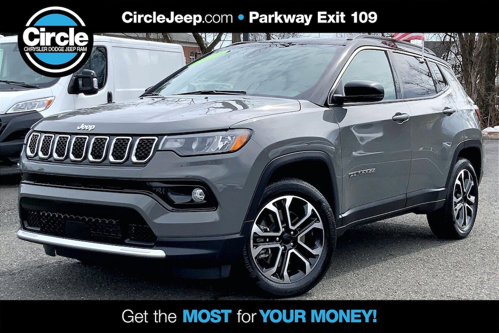 WE ARE OPEN FOR ALL YOUR SALES AND SERVICE NEEDS! COMPLETE ONLINE BUYING EXPERIENCE AVAILABLE! Circle CDJR is proud to offer this good-looking 2024 Jeep Compass a truly charming SUV with the following Features: Quick Order Package 29G Limited, 4WD, 10.1" Touchscreen Display, 3.73 Final Drive Ratio, 4-Wheel Disc Brakes, 4G LTE Wi-Fi Hot Spot, 6 Speakers, ABS brakes, Air Conditioning, Alloy wheels, AM/FM radio: SiriusXM, Auto High-beam Headlights, Auto-dimming Rear-View mirror, Automatic temperature control, Brake assist, Bumpers: body-color, Compass, Delay-off headlights, Disassociated Touchscreen Display, Driver door bin, Driver vanity mirror, Dual front impact airbags, Dual front side impact airbags, Electronic Stability Control, Emergency communication system: Jeep Connect, For Details, Visit DriveUconnect.com, For More Info, Call 800-643-2112, Four wheel independent suspension, Front anti-roll bar, Front Bucket Seats, Front Center Armrest w/Storage, Front dual zone A/C, Front fog lights, Front License Plate Bracket, Front reading lights, Fully automatic headlights, Global Telematics Box Module (TBM), Heated door mirrors, Heated front seats, Heated steering wheel, Illuminated entry, Knee airbag, Leather Shift Knob, Leather steering wheel, Leatherette Seats, Low tire pressure warning, Occupant sensing airbag, Outside temperature display, Overhead airbag, Overhead console, Panic alarm, ParkView Rear Back-Up Camera, Passenger door bin, Passenger vanity mirror, Power door mirrors, Power driver seat, Power steering, Power windows, Radio: Uconnect 5 w/10.1" Display, Rain sensing wipers, Rear anti-roll bar, Rear seat center armrest, Rear window defroster, Rear window wiper, Remote keyless entry, Security system, SiriusXM Guardian - Included Trial (B), SiriusXM Radio Service, Speed control, Split folding rear seat, Spoiler, Steering wheel mounted audio controls, Tachometer, Telescoping steering wheel, Tilt steering wheel, Traction control, Trip computer, Turn signal indicator mirrors, Variably intermittent wipers, and Wheels: 18" x 7" Painted Diamond Cut AluminuM. Odometer is 6858 miles below market average! 24/32 City/Highway MPG