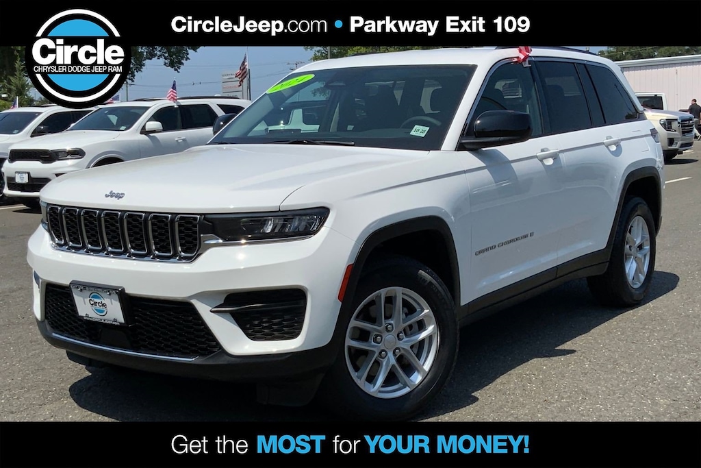 WE ARE OPEN FOR ALL YOUR SALES AND SERVICE NEEDS! COMPLETE ONLINE BUYING EXPERIENCE AVAILABLE! Circle CDJR is proud to offer this charming 2024 Jeep Grand Cherokee a truly gorgeous SUV with the following Features: Quick Order Package 22A Laredo (DISC), FCA US LLC Certified Pre-Owned Certified, 4WD, 3.45 Rear Axle Ratio, 4-Wheel Disc Brakes, 6 Speakers, ABS brakes, Air Conditioning, Alloy wheels, Anti-whiplash front head restraints, Automatic temperature control, Brake assist, Bumpers: body-color, Cloth Seats, Compass, Delay-off headlights, Driver door bin, Driver vanity mirror, Dual front impact airbags, Dual front side impact airbags, Electronic Stability Control, Emergency communication system, Four wheel independent suspension, Front anti-roll bar, Front Bucket Seats, Front Center Armrest w/Storage, Front dual zone A/C, Front License Plate Bracket, Front reading lights, Fully automatic headlights, Heated door mirrors, Illuminated entry, Knee airbag, Low tire pressure warning, Normal Duty Suspension, Occupant sensing airbag, Outside temperature display, Overhead airbag, Overhead console, Panic alarm, ParkView Rear Back-Up Camera, Passenger door bin, Passenger vanity mirror, Power door mirrors, Power driver seat, Power steering, Power windows, Radio data system, Radio: Uconnect 5 w/8.4" Display, Rear anti-roll bar, Rear reading lights, Rear window defroster, Rear window wiper, Remote keyless entry, Security system, Speed control, Speed-Sensitive Wipers, Split folding rear seat, Spoiler, Steering wheel mounted audio controls, Tachometer, Telescoping steering wheel, Tilt steering wheel, Traction control, Trip computer, Variably intermittent wipers, Voltmeter, and Wheels: 17" x 6.5" Fully Painted Aluminum. Odometer is 4014 miles below market average! 19/26 City/Highway MPG