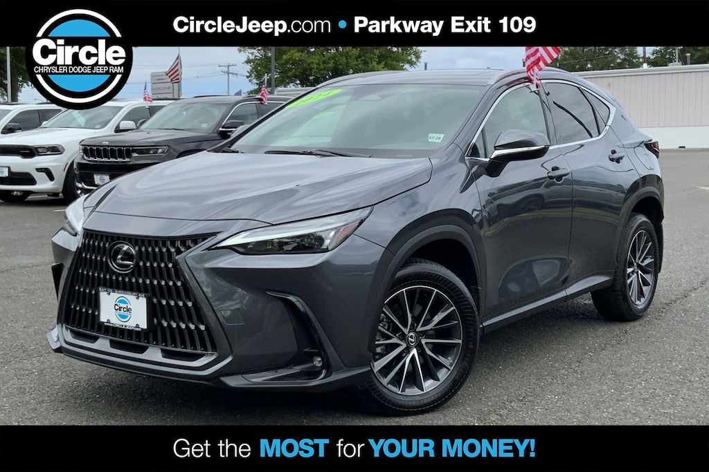 WE ARE OPEN FOR ALL YOUR SALES AND SERVICE NEEDS! COMPLETE ONLINE BUYING EXPERIENCE AVAILABLE! Circle CDJR is proud to offer this outstanding-looking 2024 Lexus NX a truly beautiful SUV with the following Features: 10 Speakers, 18" Wheels, 4-Wheel Disc Brakes, ABS brakes, Air Conditioning, Alloy wheels, AM/FM radio: SiriusXM, Anti-whiplash front head restraints, Auto High-beam Headlights, Auto-dimming door mirrors, Auto-dimming Rear-View mirror, Automatic temperature control, Axle Ratio: 3.33, Brake assist, Bumpers: body-color, Delay-off headlights, Driver door bin, Driver vanity mirror, Dual front impact airbags, Dual front side impact airbags, Electronic Stability Control, Emergency communication system: Safety Connect (up to 10-year trial subscription included), Exterior Parking Camera Rear, Four wheel independent suspension, Front anti-roll bar, Front Bucket Seats, Front Center Armrest, Front dual zone A/C, Front fog lights, Front reading lights, Fully automatic headlights, Garage door transmitter: HomeLink, Heated door mirrors, Heated Front Bucket Seats, Heated front seats, Illuminated entry, Knee airbag, Leather Shift Knob, Leather steering wheel, Low tire pressure warning, Navigation system: Drive Connect Cloud Navigation (subscription required), NuLuxe Seat Trim, Occupant sensing airbag, Outside temperature display, Overhead airbag, Overhead console, Panic alarm, Passenger door bin, Passenger vanity mirror, Power door mirrors, Power driver seat, Power passenger seat, Power steering, Power windows, Radio data system, Radio: 10-Speaker Sound System, Rear anti-roll bar, Rear reading lights, Rear seat center armrest, Rear window defroster, Rear window wiper, Remote keyless entry, Security system, Speed control, Speed-sensing steering, Split folding rear seat, Spoiler, Steering wheel mounted audio controls, Tachometer, Telescoping steering wheel, Tilt steering wheel, Traction control, Trip computer, Turn signal indicator mirrors, Variably intermittent wipers, and Wireless Apple CarPlay/Wireless Android Auto. 21/28 City/Highway MPG